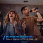 2 Conexões: Uma auxiliar para curtir músicas e outros conteúdos de áudio conectando a caixa a smartphones e notebooks. E outra entrada para microfone para soltar a voz no karaokê.